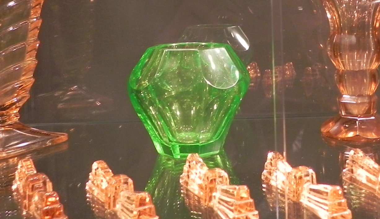 Napisałem także, że wystawiono dwa wazony niezidentyfikowane (określając jako kraj pochodzenia – Polska, i czas – lata 30-te XX wieku), oraz po jednym wazonie z hut szklanych Zawiercie i Hortensji (zaznaczyłem także, że nie mam pewności co do pochodzenia tych szkieł).